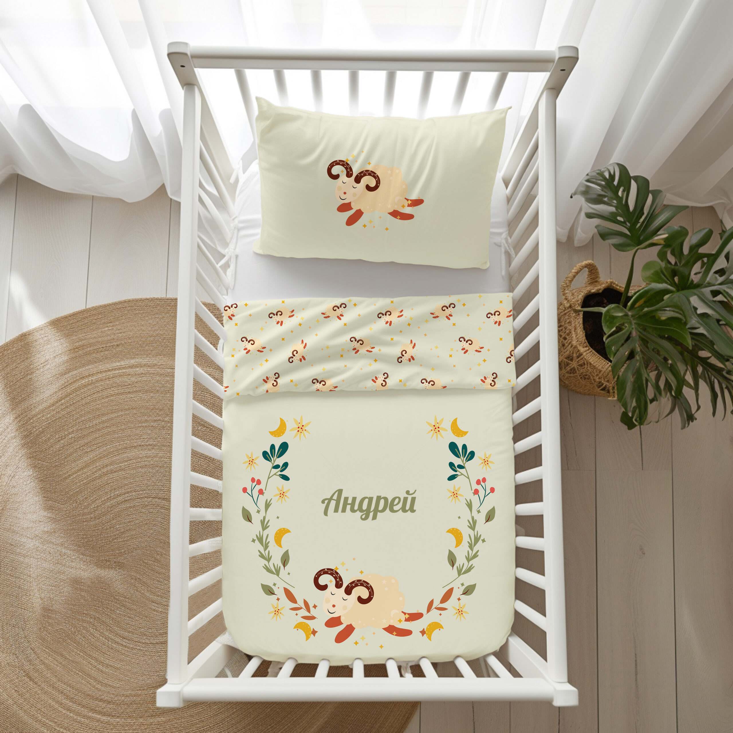 Персонализирани бебешки чаршафи от 100% органичен памук със зодия ОВЕН
