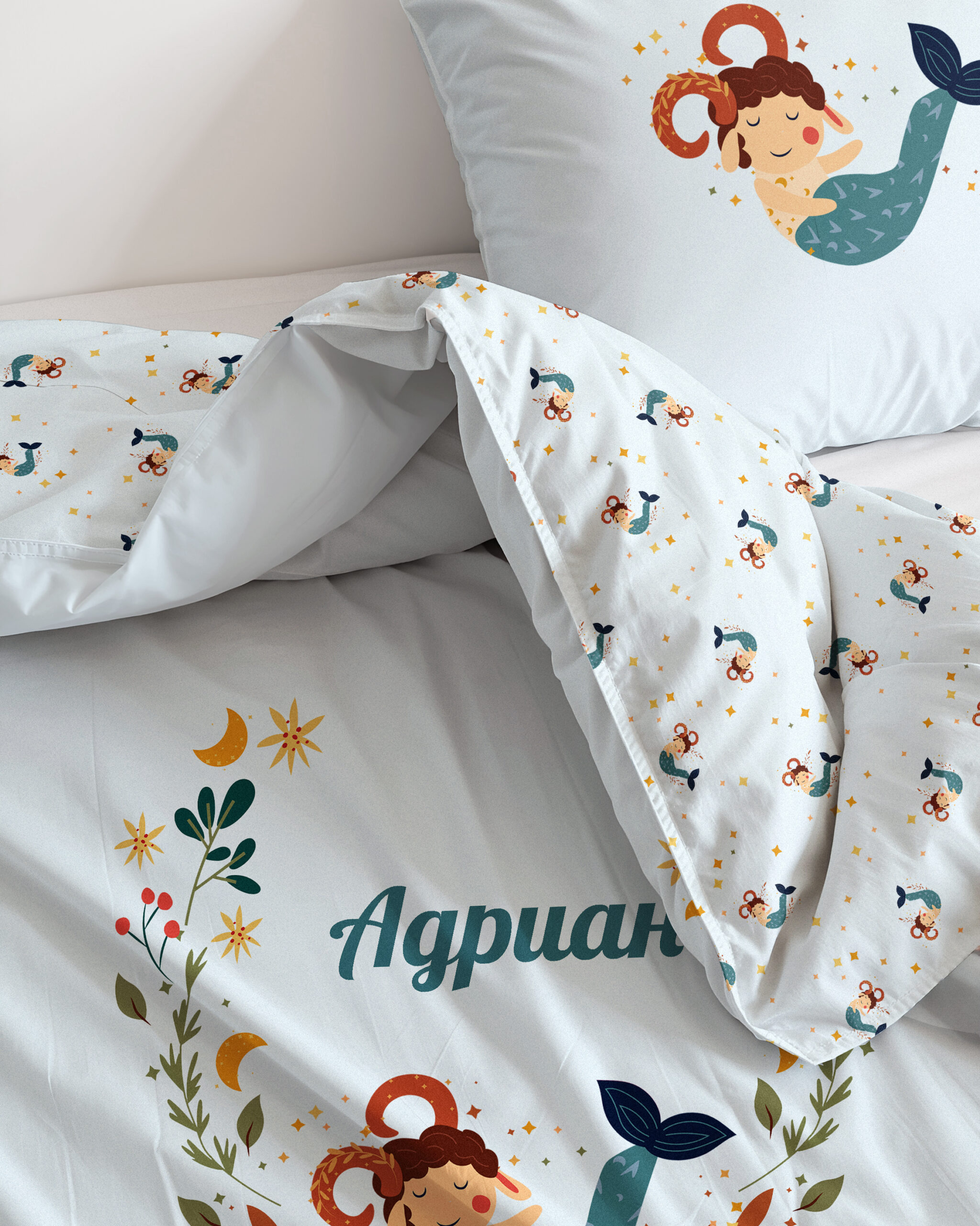 Персонализирани бебешки чаршафи от 100% органичен памук със зодия КОЗИРОГ