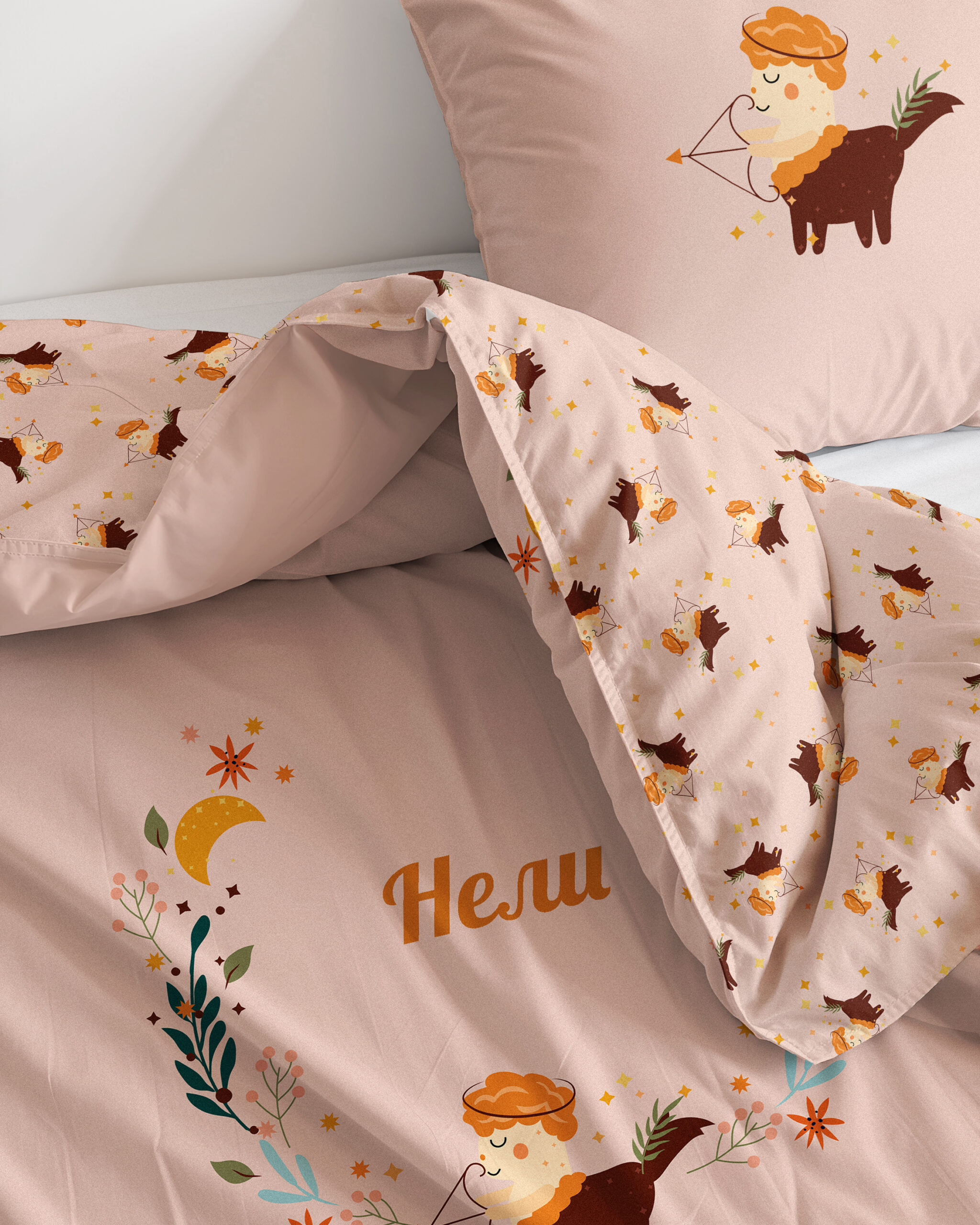 Персонализирани бебешки чаршафи от 100% органичен памук със зодия СТРЕЛЕЦ