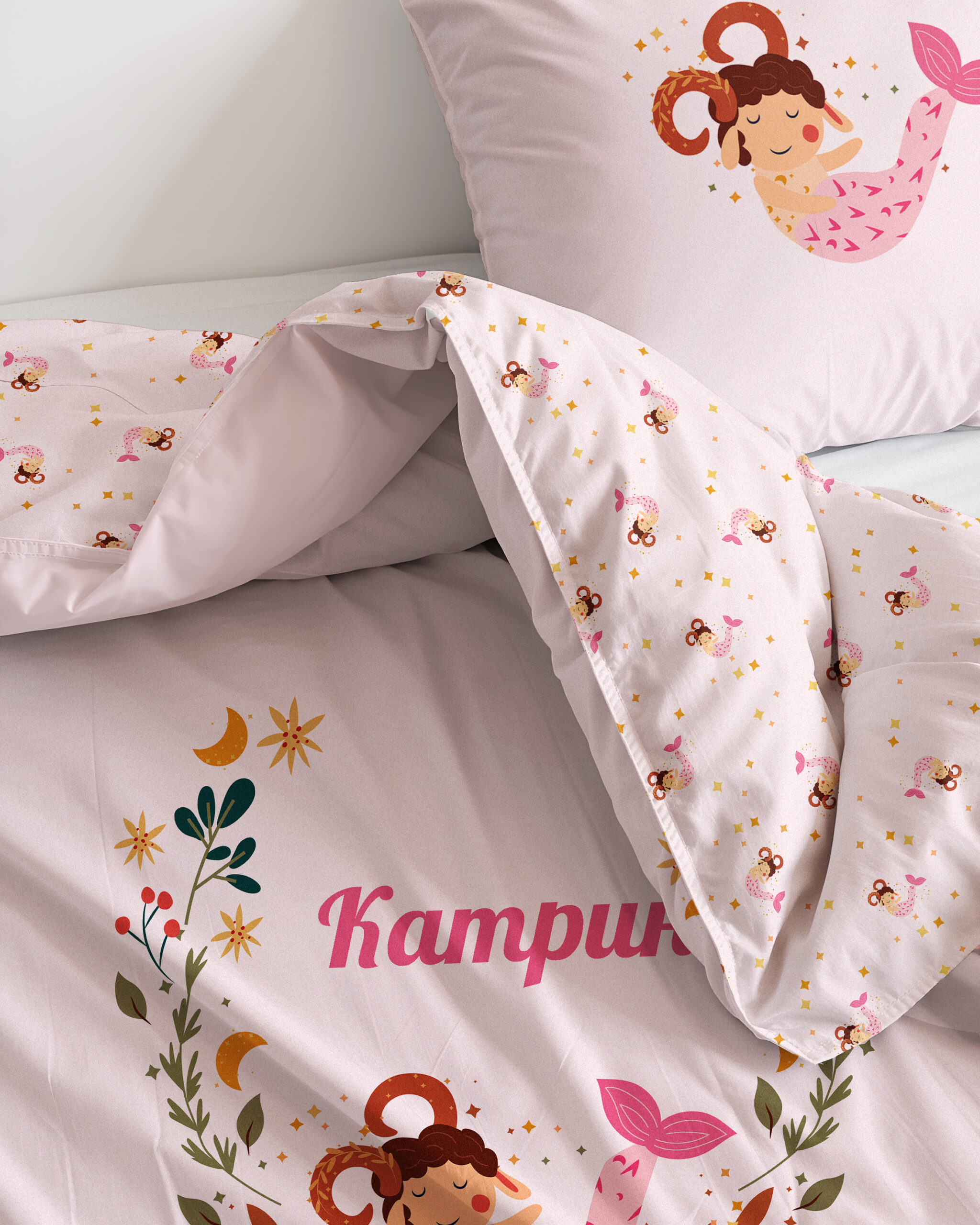 Персонализирани бебешки чаршафи от 100% органичен памук със зодия КОЗИРОГ