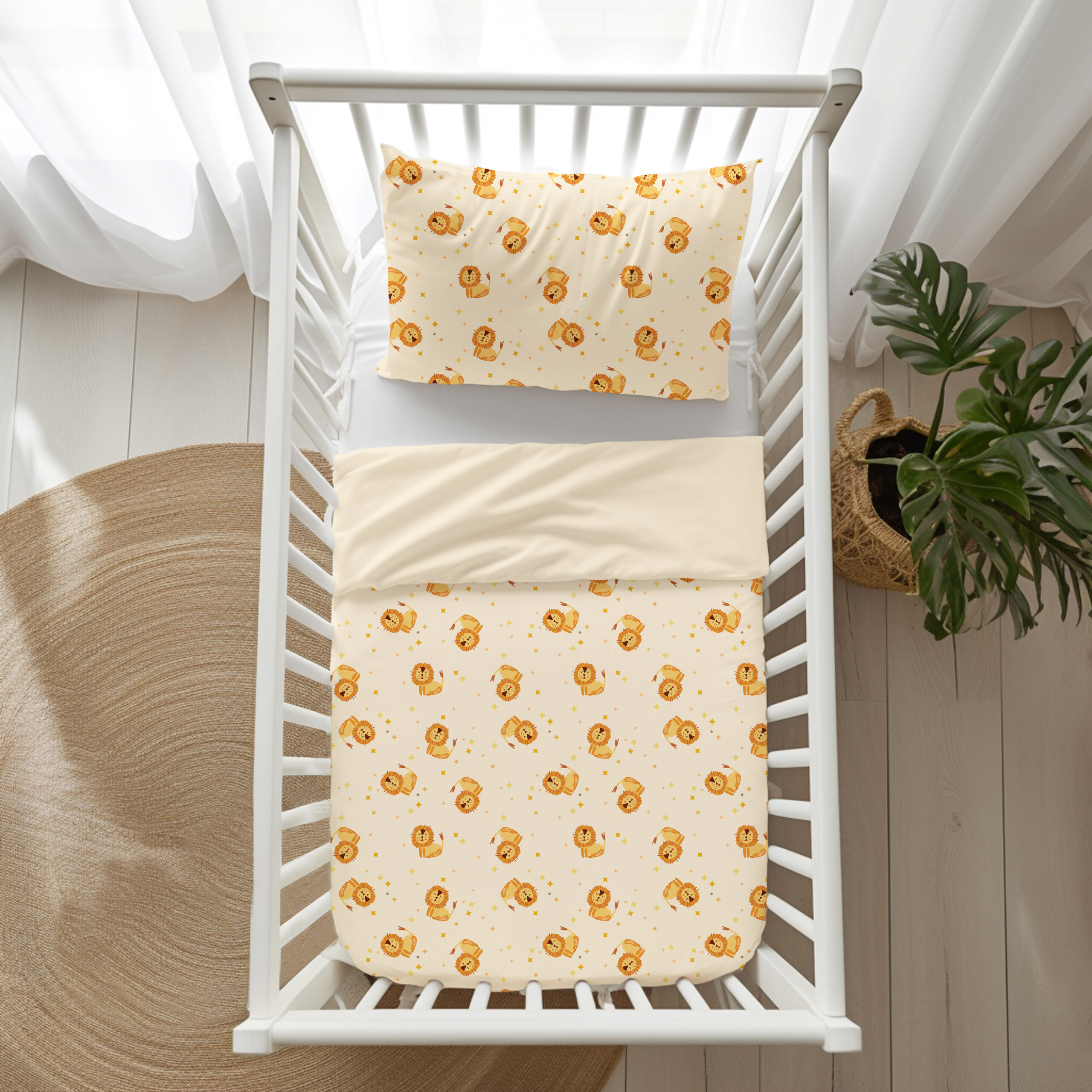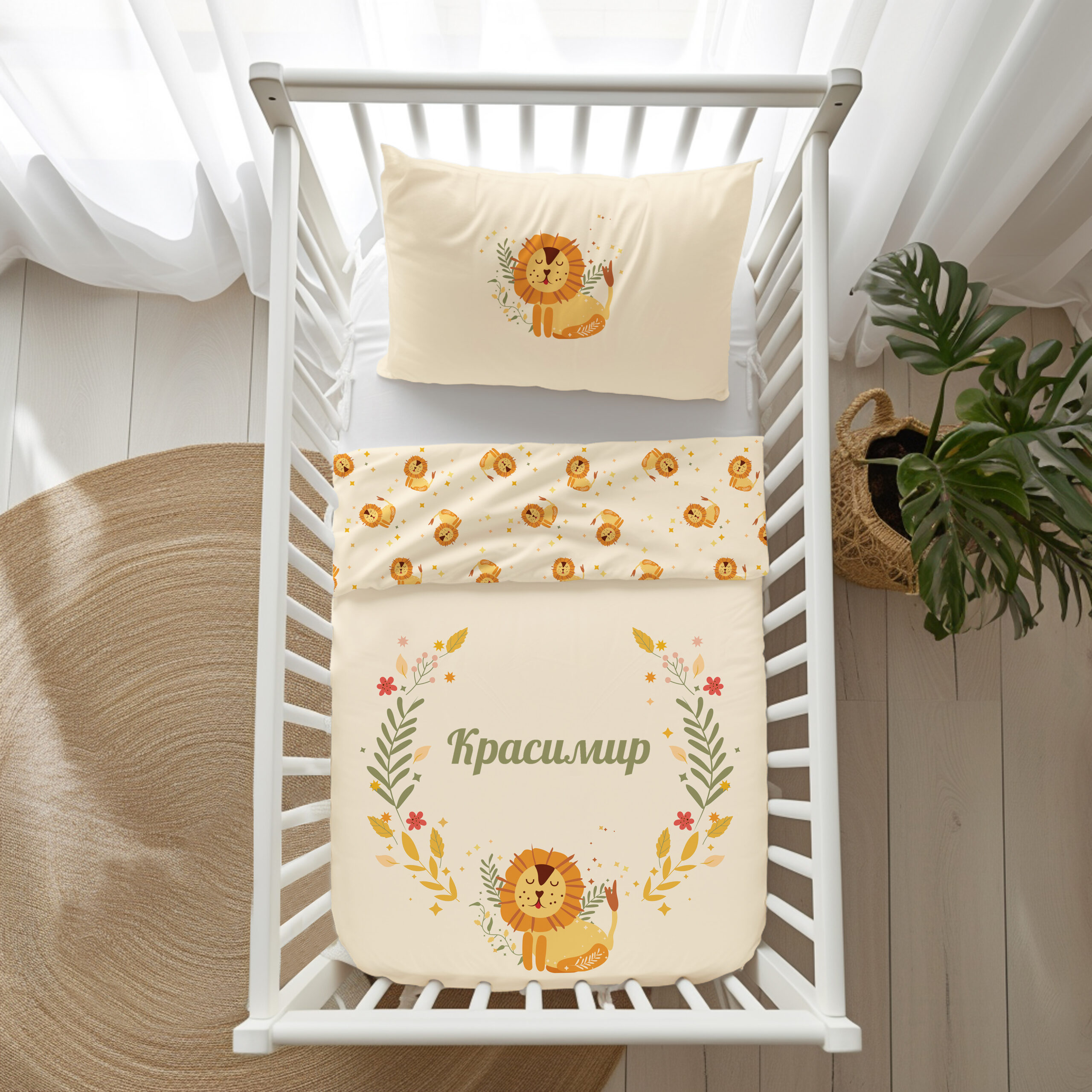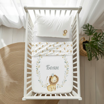 Персонализирани бебешки чаршафи от 100% органичен памук със зодия ЛЪВ