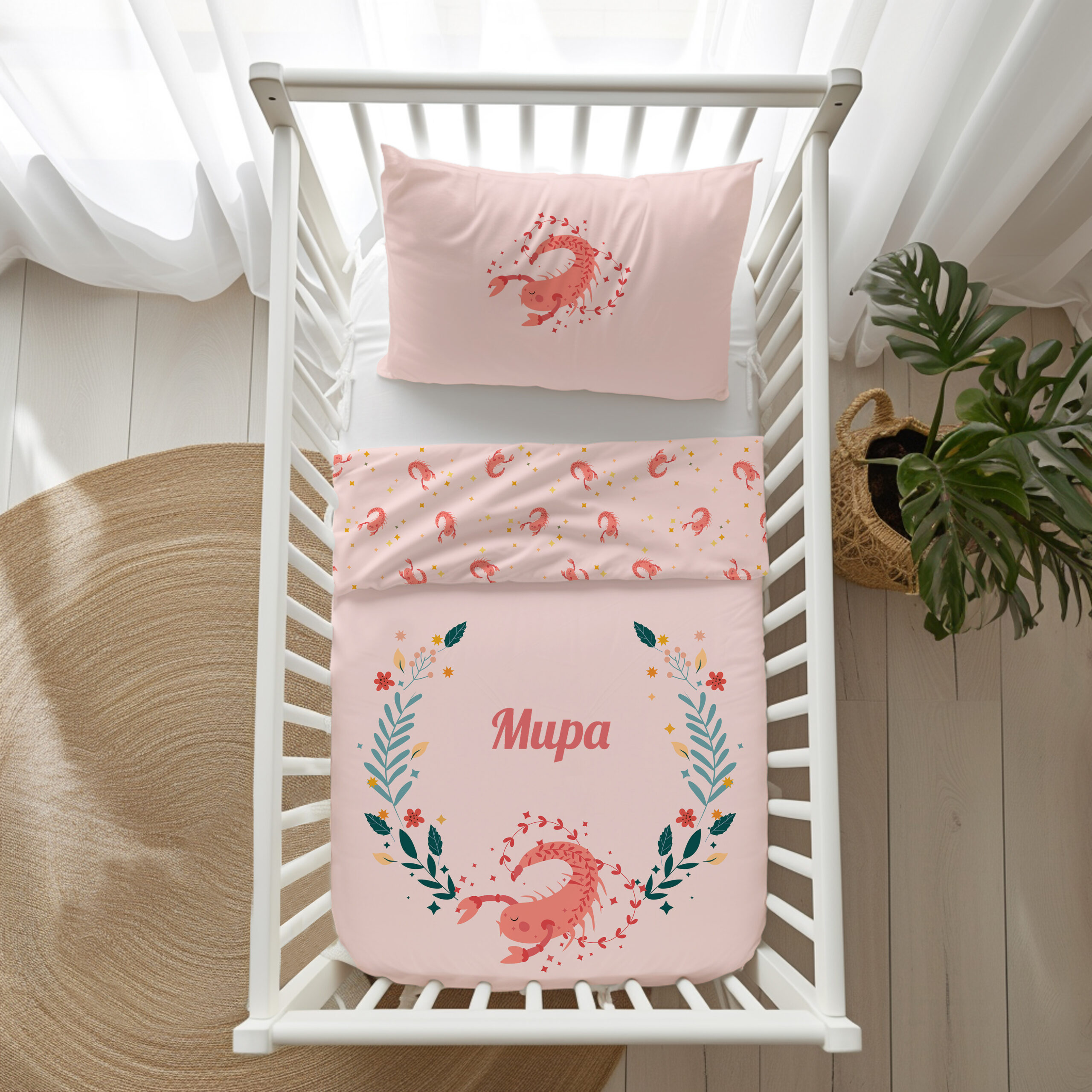 Персонализирани бебешки чаршафи от 100% органичен памук със зодия СКОРПИОН